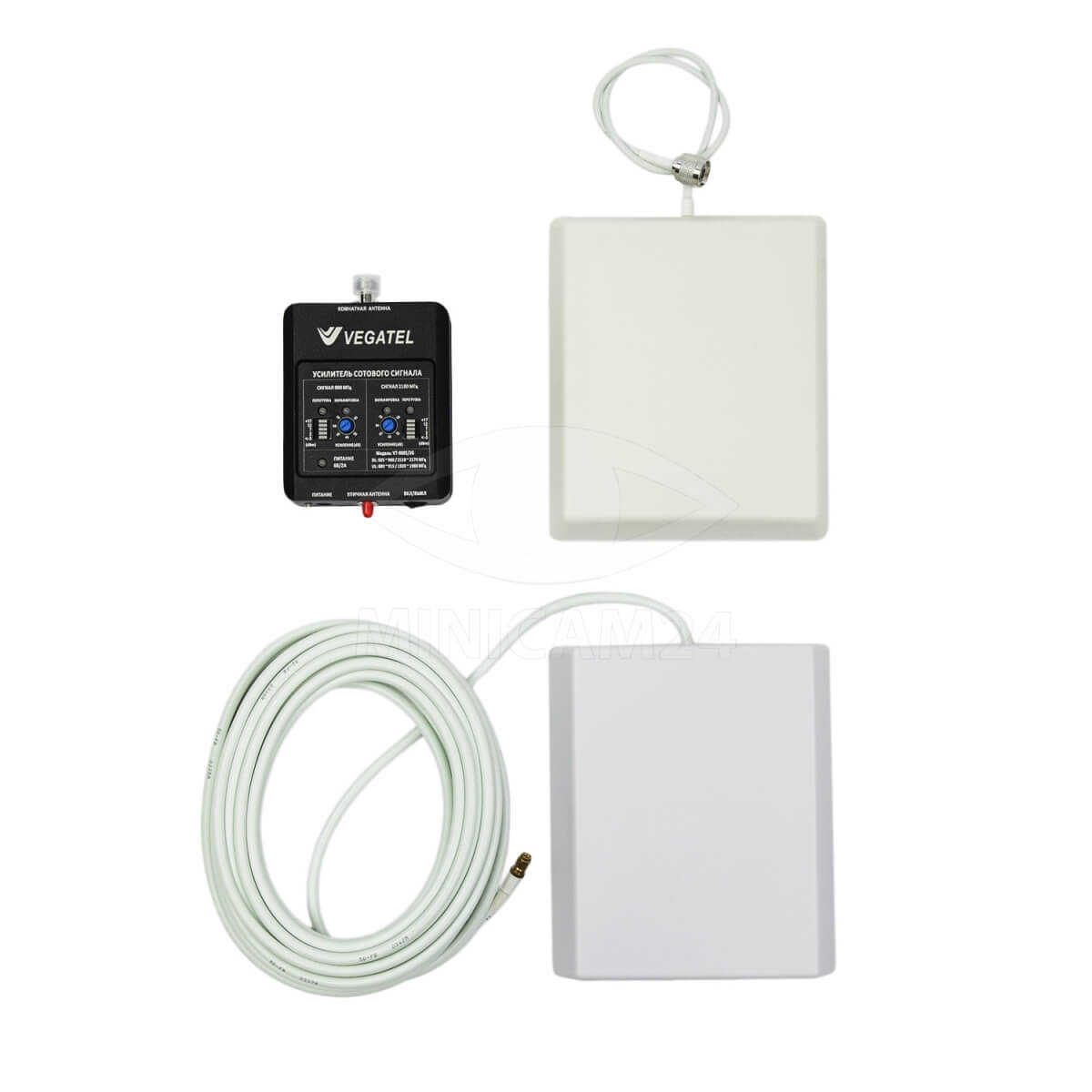 Компактный комплект для усиления сигналов сотовой связи может применяться для двух стандартов связи: EGSM/GSM-900 (2G) 925 ~ 960 МГц и UMTS900 (3G) 925 ~ 960 МГц. В составе комплекта блок усилителя в комнатном исполнении с питанием от сети 220 В через сетевой адаптер, и двух антенн, внутренней и внешней в белых пластиковых корпусах. Для соединения частей комплекта предусмотрен высокочастотный кабель. Прибор обеспечивает улучшение связи на площади до 350 кв. м.